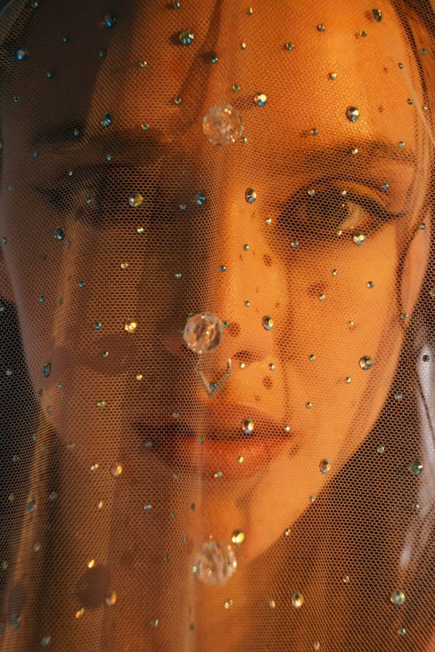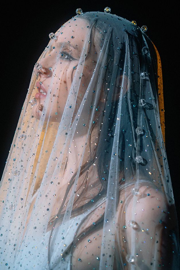 Фата со стразами и крупными хрусталиками для сияющего и смелого образа